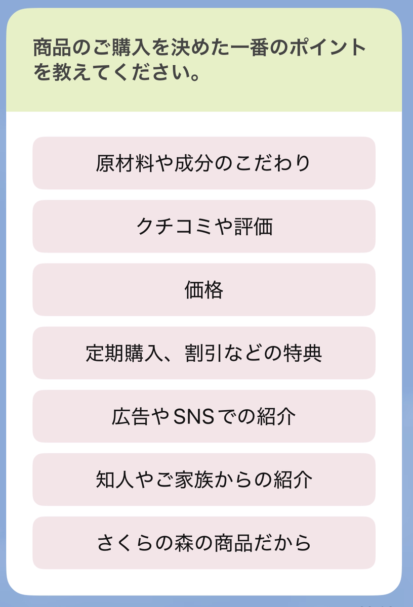 友だち追加後に届くアンケート(計4問)の案内にそってご回答ください。