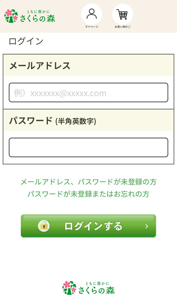 マイページにログイン後、メールアドレスとパスワードを入力し、ログインしてください。