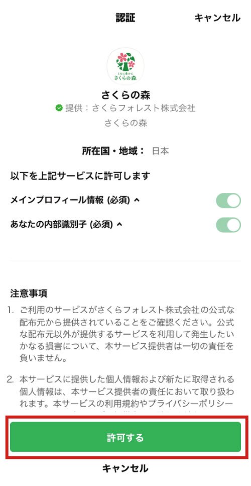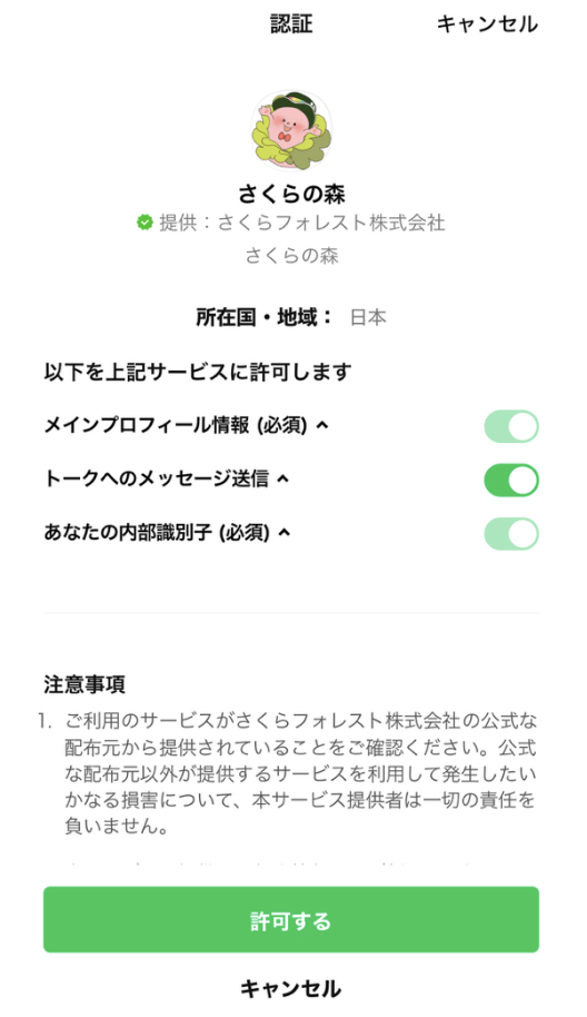 LINEアプリ上でお客様のLINEアカウントとさくらの森でのご利用状況を連携することです。
